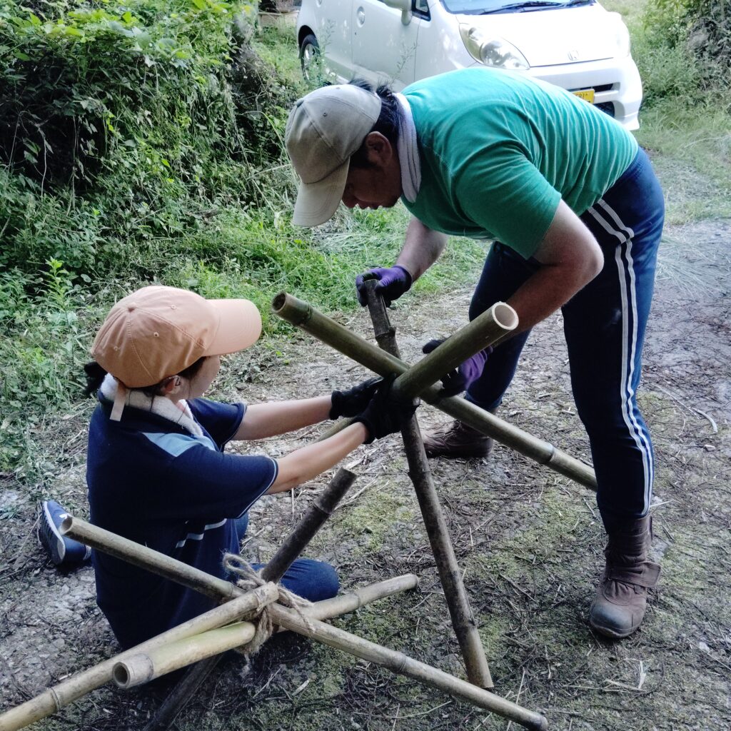 その後は、参加者みんなで協力して竹樋を組み立て、いよいよ…