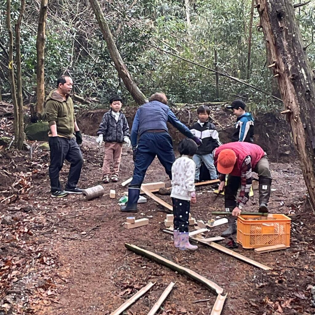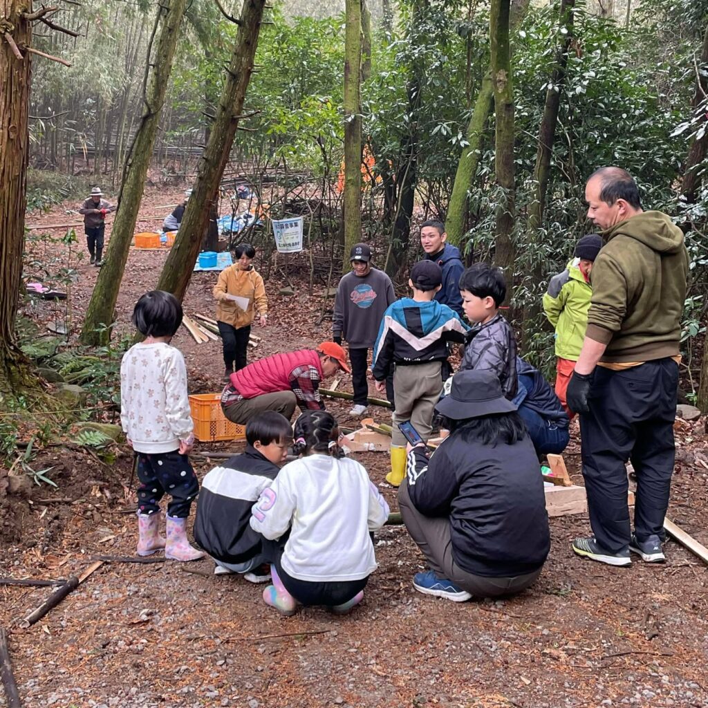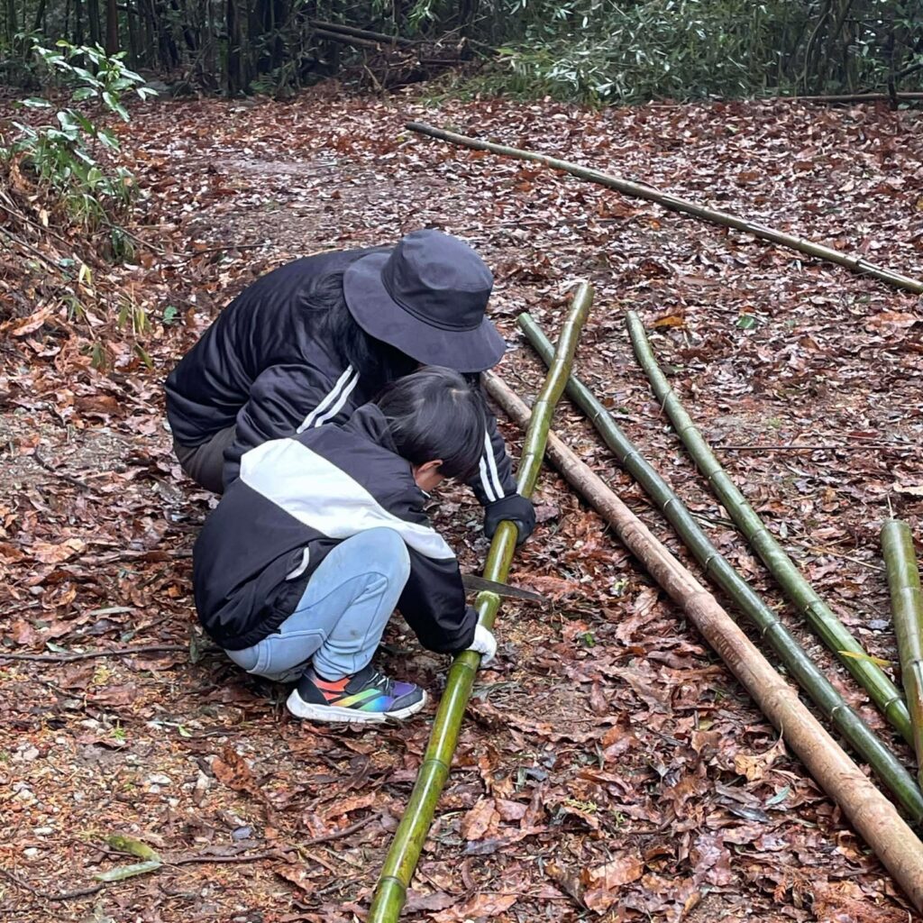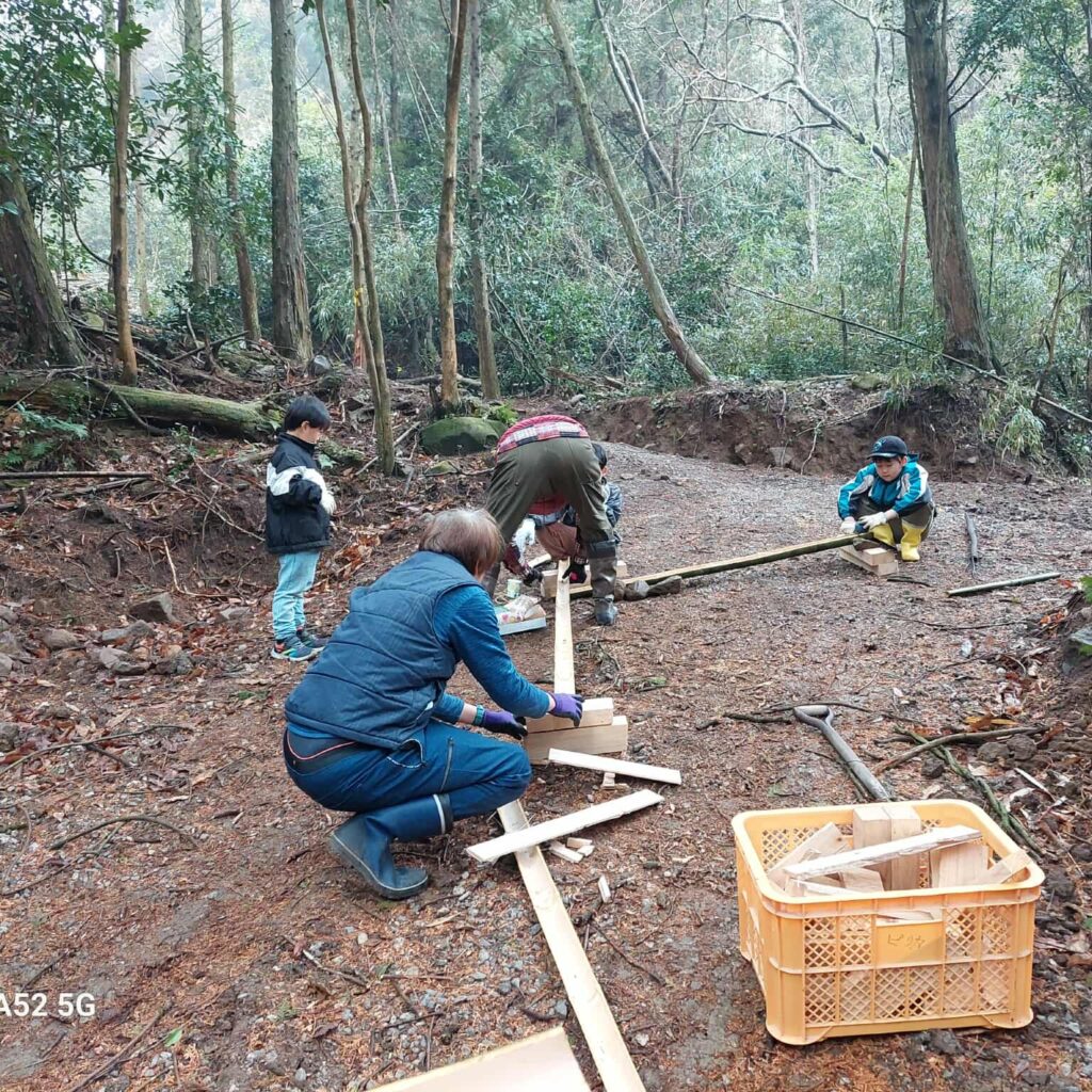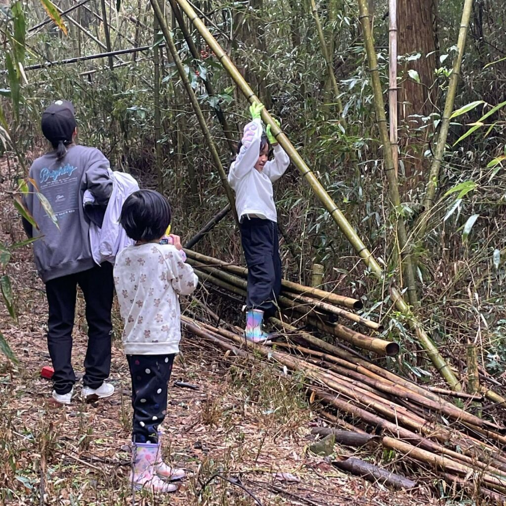 2026年2月15日、「森守の森」の作業道を舞台に、イベント「ころころ流れる竹の道づくり」を開催しました。