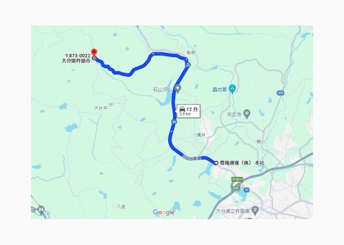 ですので必ずわかりやすい豊後通運本社経由で来てください。